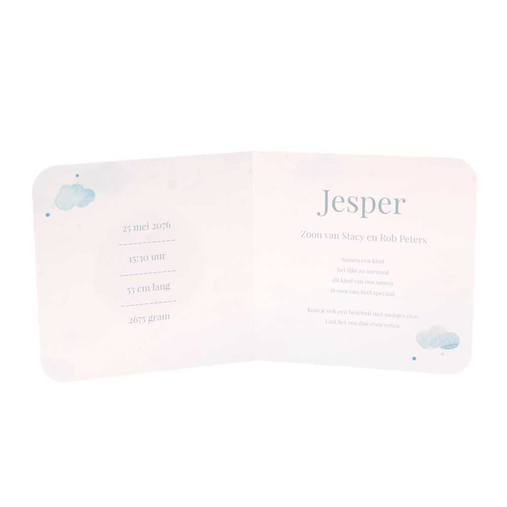 Gestanst geboortekaartje "In de wolken - It's a boy"