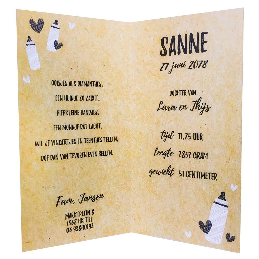 3D Geboortekaart babyfles "kraft". Dankzij de speciale typografie (lettertype) en de kraft "look" krijgt deze kaart een stoere uitstraling.