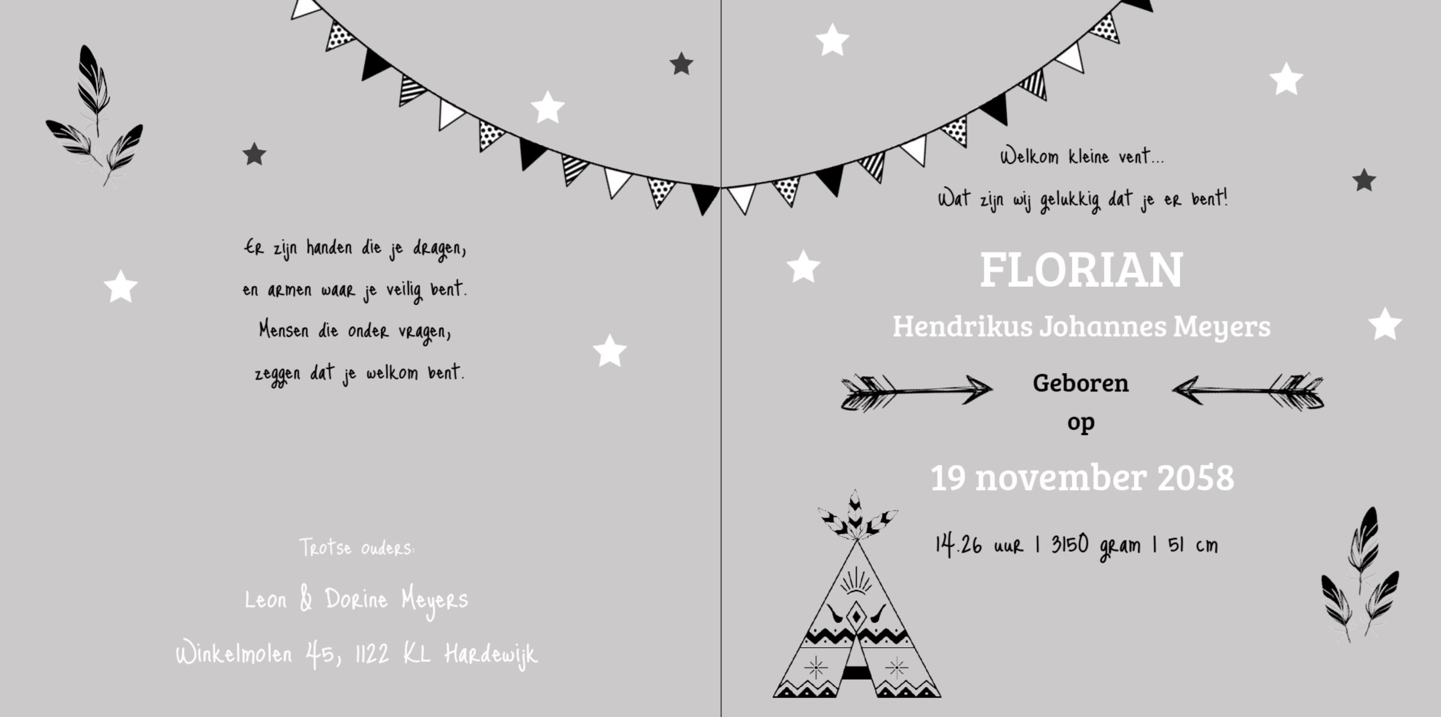 Kaartje voor een jongen met een tipi