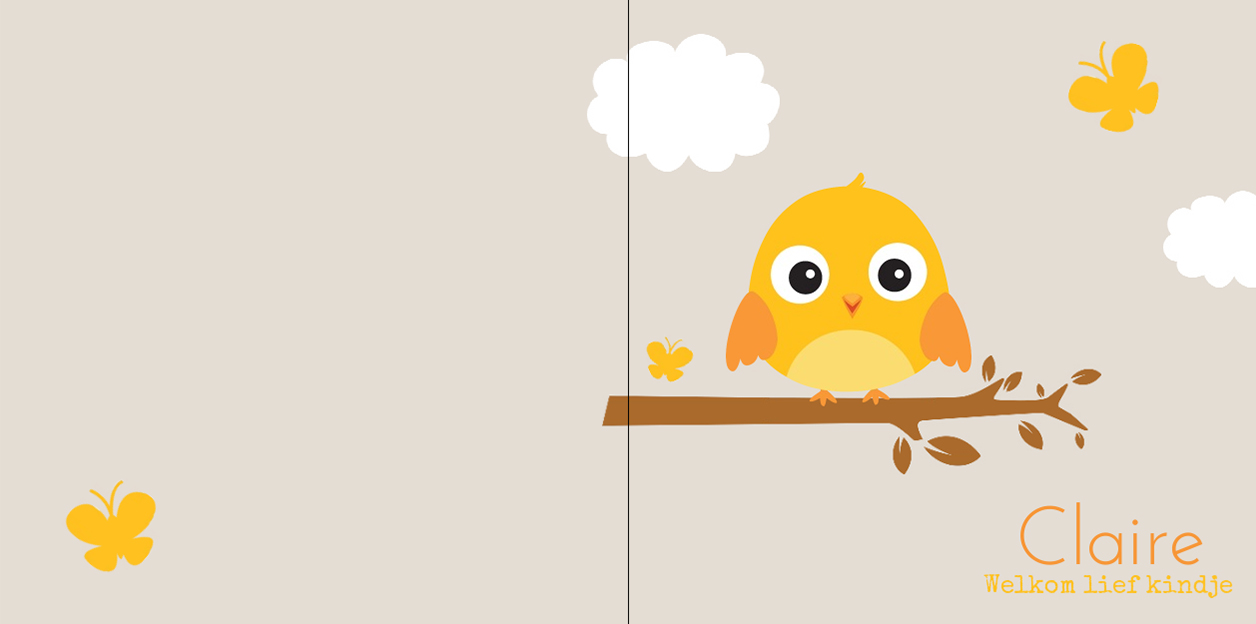 Gevouwen kaart "Geel vogeltje op tak"